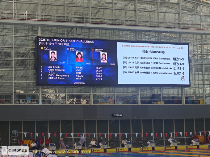 The game used the OMEGA device from Swiss Timing. Ultra Score system was used for gathering the timing and scoring information from the device, and display on the LED screen automatically.